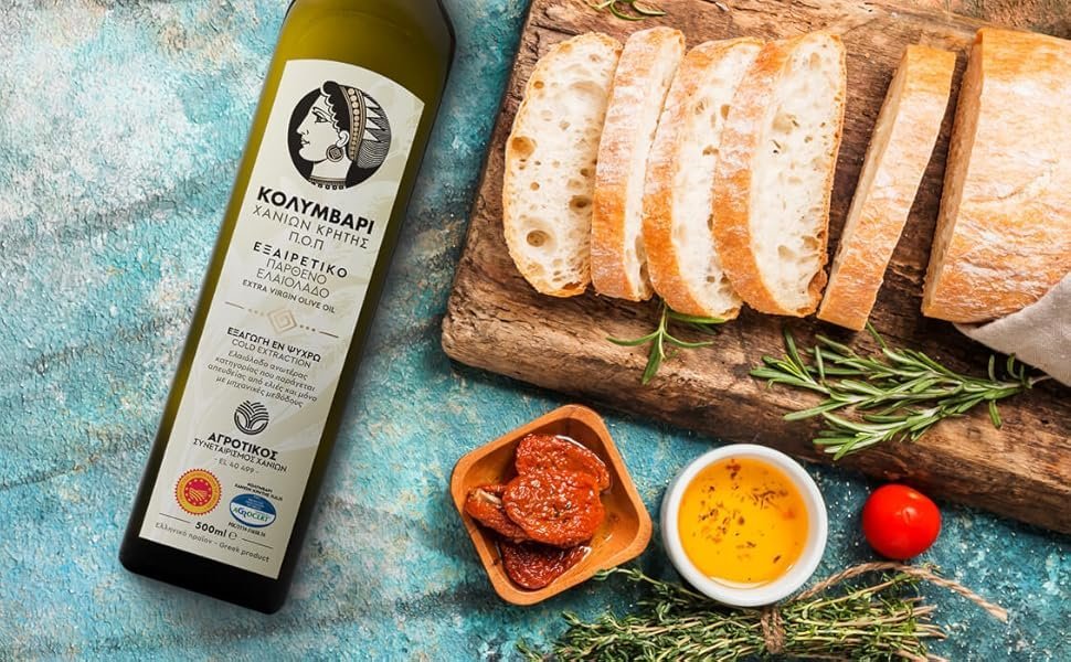 Erleben Sie das Aroma und die Qualität des Kolymvari Extra Nativ Olivenöls – aus Koroneiki Oliven Kretas mit geschützter Ursprungsbezeichnung (g.U.)